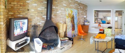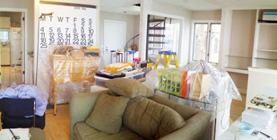 and this... Scott is here some days working on my office to the right. So everything from there had to move into the living area.