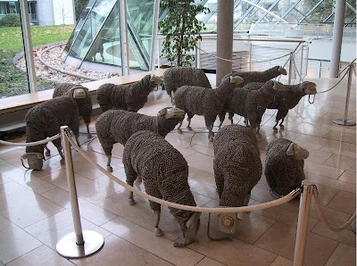 The artist is Jean-luc Cornec and the sheep are at the Museum of Communications in Frankfurt, Germany.